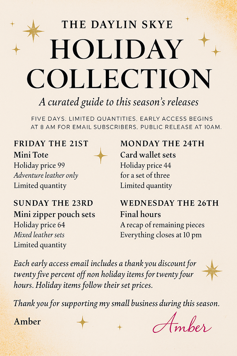 Once again a great bag! This is my third purchase from Daylin Skye and the quality is outstanding. I will be back for more to expand my collection.