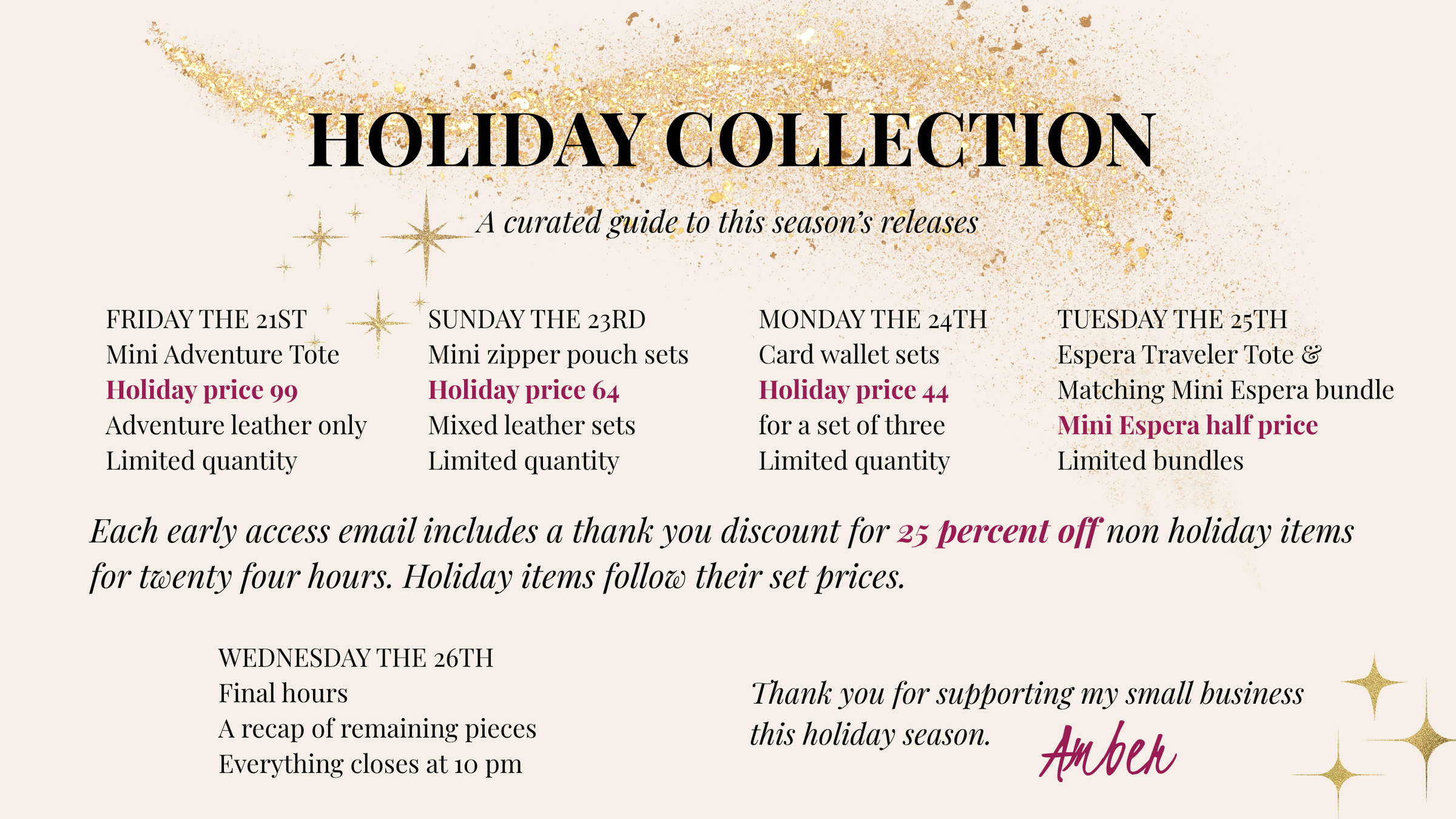 Amber and her bags are superior quality. The craftsmanship is amazing. This bag is a great size. Not heavy to carry. The details and zippers are amazing. I have already ordered another bag. You cannot go wrong.